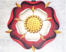 この時ヘンリー7世はランカスター家の赤バラとヨーク家の白バラを重ねた図柄をチューダーローズとして紋章としたのでした。